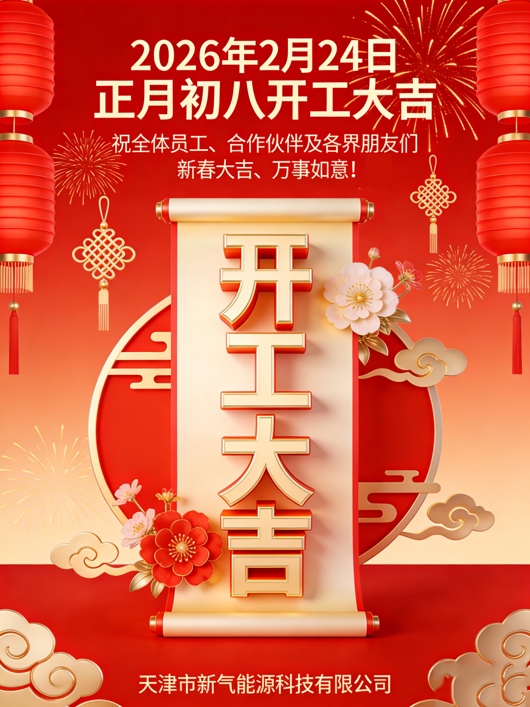 正月初八,开工大吉! 天津新气能源祝全体员工、合作伙伴及各界朋友们 2026新春大吉、万事如意!